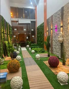 - الإكسسوارات الطبيعية مثل الصخور والنوافير التي تضيف روحًا خاصة للمكان